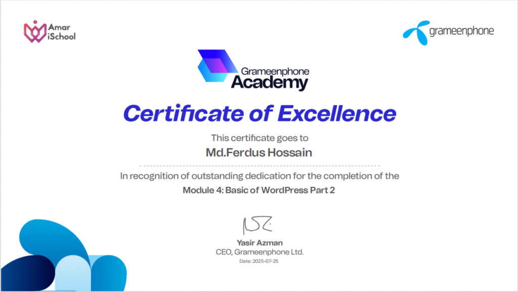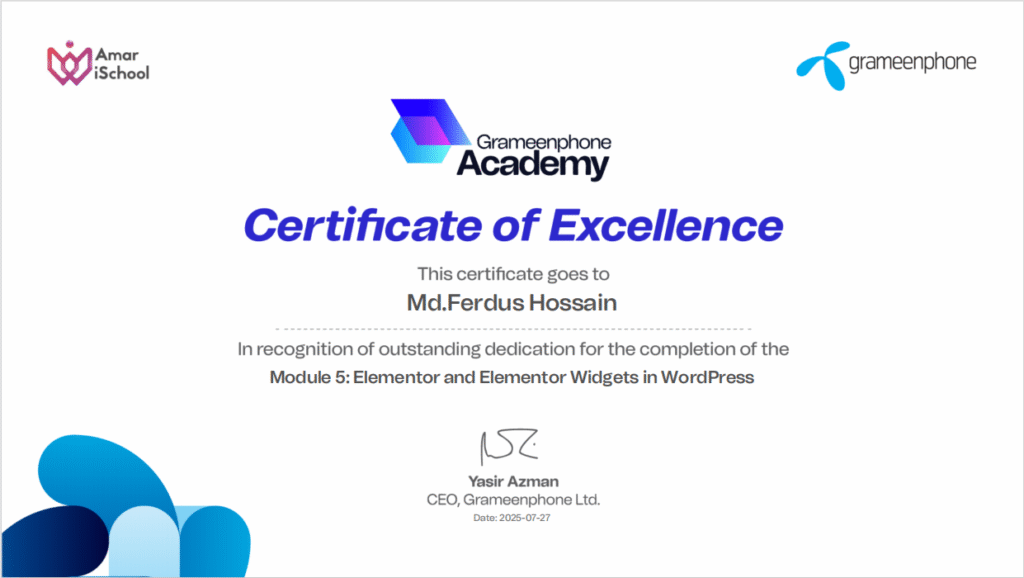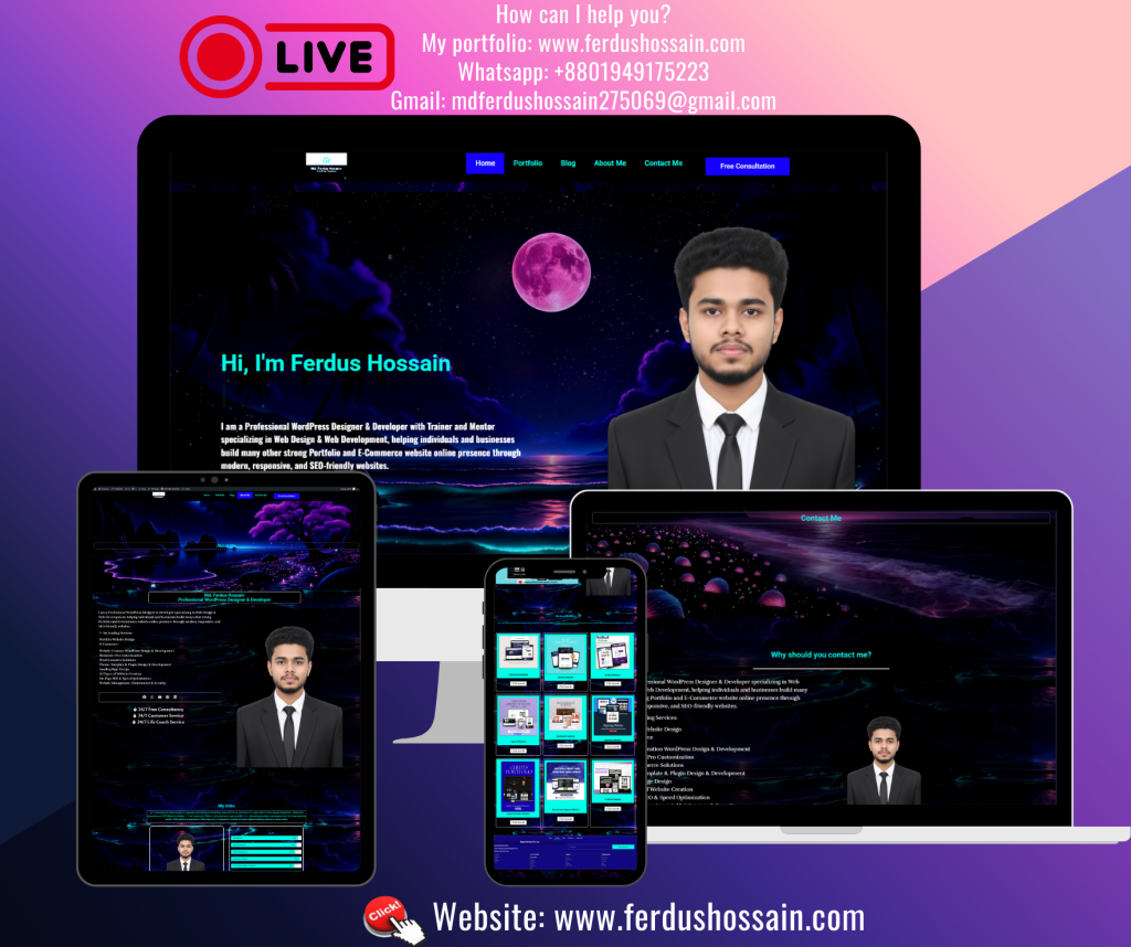 I am a professional WordPress Web Designer & Developer specializing in WordPress, Elementor Pro, and WooCommerce. I create responsive, high-performing, and user-friendly websites with a strong focus on Portfolio and E-commerce solutions, ensuring seamless functionality, optimized performance, and exceptional user experience that help businesses grow online.
